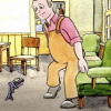 Lean e air sin gus mu dheireadh bhiodh a' sgadan, bhiodh e beò gun a bhith 's an uist' idir. Bhiodh e aige 's bhiodh e 'falbh ás a dheoghaidh. Bhiodh e 'dol dha 'n choille còmhla ris, bhiodh e 'dol a dh'iarraidh a' chruidh còmhla ris 's bhiodh, bhiodh …. O, bha e fhéin 's a' sgadan a' faighinn air adhart math còmhla.